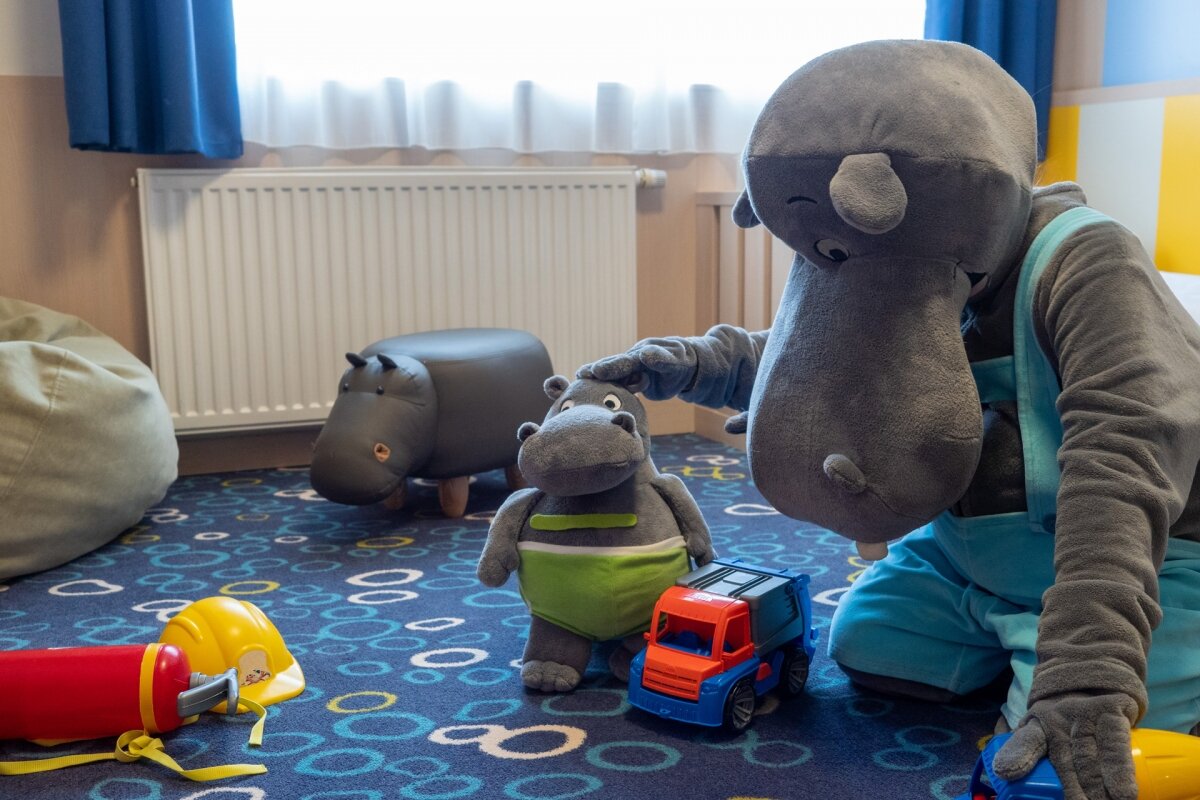 Kedves Patrik! A hétéves Csongor lenne a te barátod, hiszen mindkettőtöket nagyon foglalkoztatja a víziló-lakás kérdése. El is gondolkodtam, hogy tudnánk a kedvetekre tenni. Szeretnétek látni Bobóék szobáját? Annyi mindent megvalósítottunk már a kollégáimmal, lehet, hogy megszervezzük, hogy néha be lehessen lesni a vízilovainkhoz. Adj nekem egy kis időt. Addig is annyit elárulok, hogy Bobónak most az a kedvenc szobája, ahol ő szerepel a tapétán is. Ez a szoba az Erzsébet házban van, és hamarosan több családi lakosztályban is felbukkan majd a vízilovas gyerekszoba.