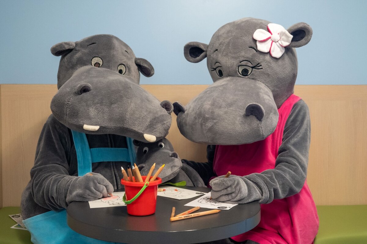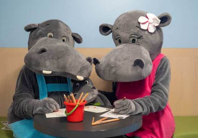 Kedves Csongor! Bobó és Mimi gyakran bukkannak fel az óvoda és az étterem környékén. Annyit elárulhatok, hogy itt laknak a szállodában. Pontos helyet nem mondhatok, mert olyan népszerűek kis vendégeink körében, hogy biztos mindig állna valaki az ablakuk előtt. Néha bizony ők is szeretnek visszavonulni, egy kis víziló-nyugalomba. Aztán persze újra jönnek játszani, táncolni…Hány évesek? Ha víziló évben számoljuk, akkor …. lássuk csak… hát én sem tudom pontosan. De az biztos, hogy Bobót már születése óta, Mimit pedig néhány éve ismerem. És tudod már én is itt dolgozok több mint 25 éve.