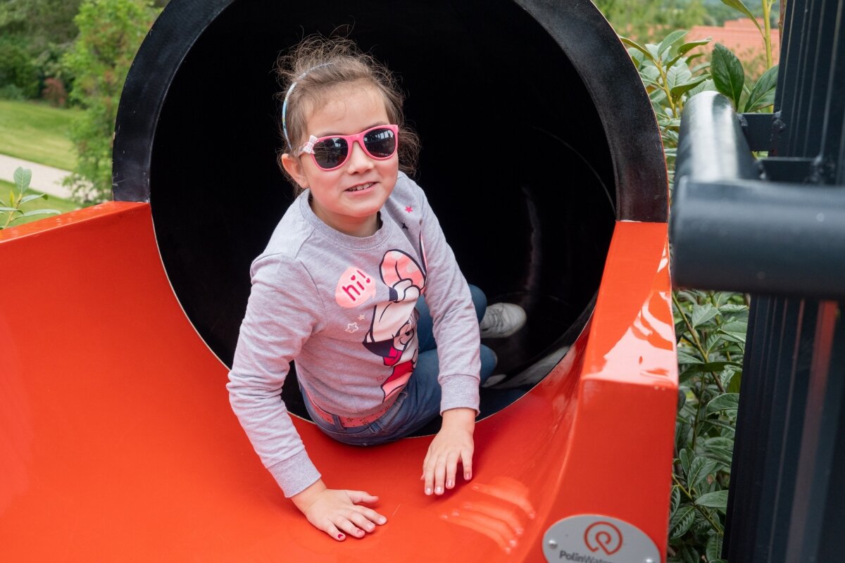 Kedves Zolika! Képzeld el, hogy mikor építették a csúszdát a szerelő bácsik, akkor én is többször kipróbáltam. Volt egy olyan alkalom is, amikor még nem volt jól beszerelve a csúszda, mert nem csúszott igazán. Ott csücsültem a közepén, és úgy kellett kimásznom. Hát ez bizony vicces volt. Aztán szépen minden a helyére került, és most már simán lecsúszok rajta. 5 évesen neked pont ideális lesz. Nem nagyon gyors, nem fogsz megijedni. Ha kipróbáltad, meséld majd el nekem!
